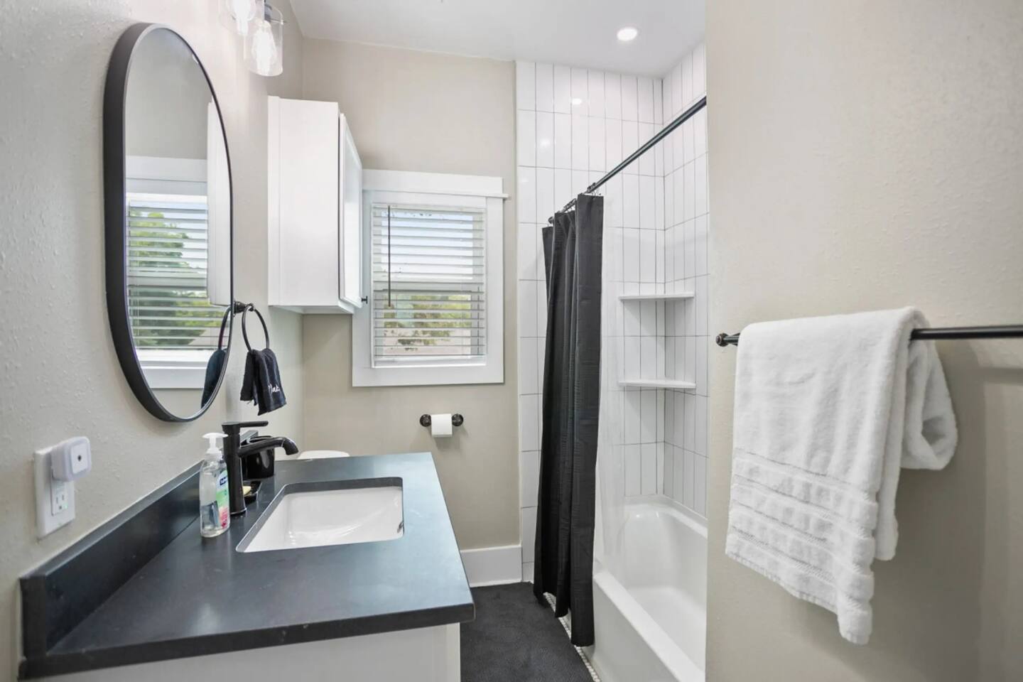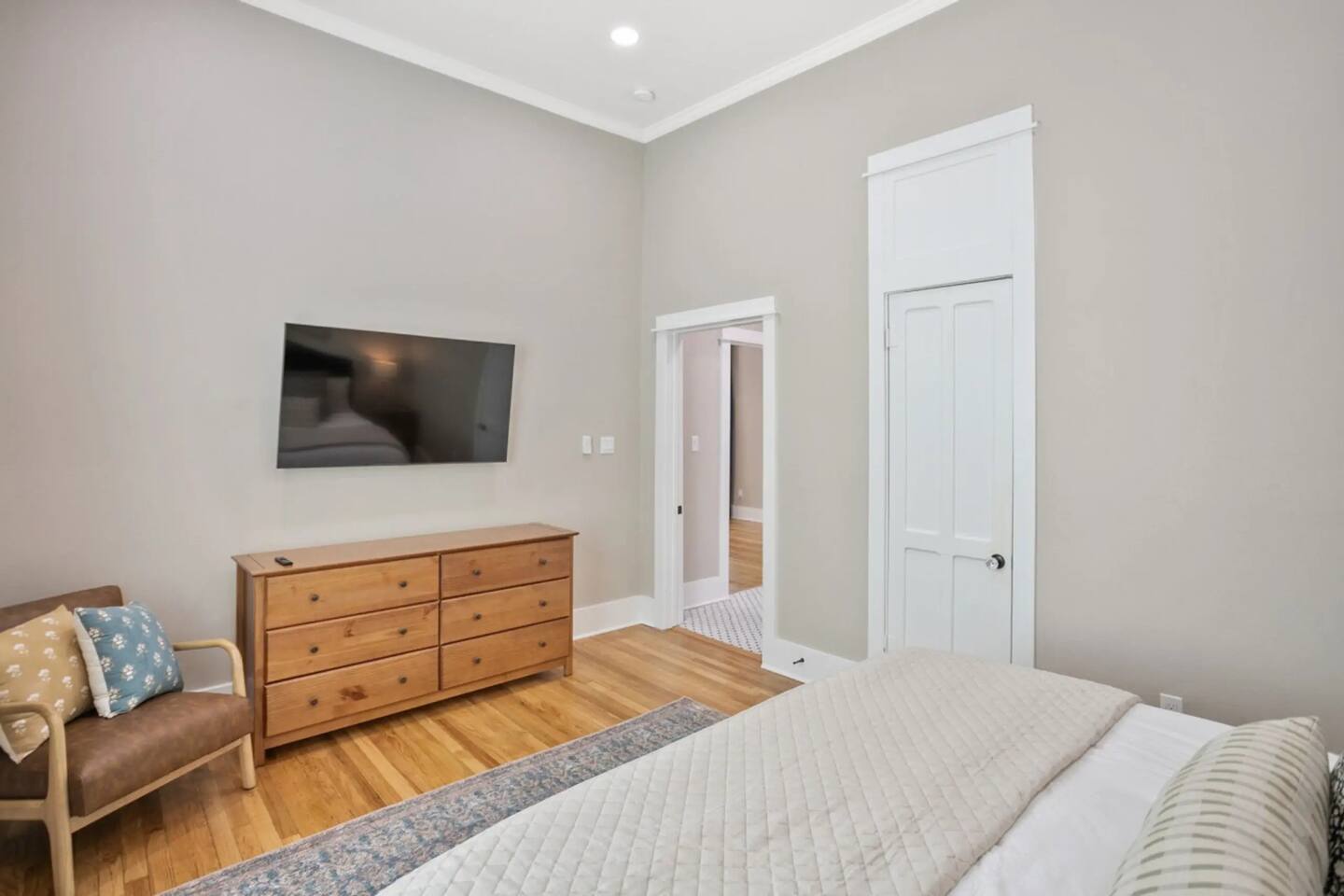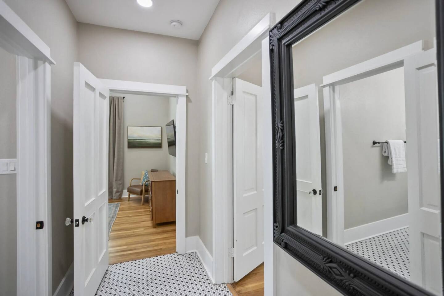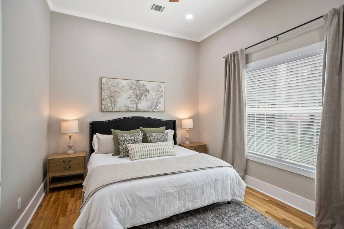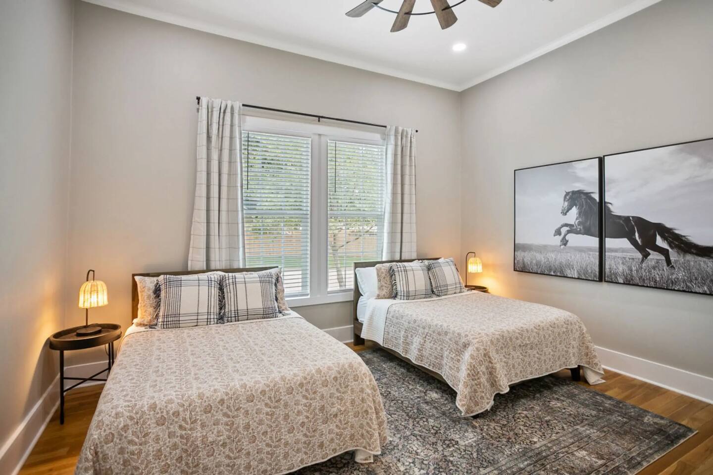 • Prime Location: A stone’s throw from downtown shops, local dining, and Brenham’s best attractions. • Restful Retreats: Choose between the primary suite with a luxurious King bed or the second bedroom featuring two cozy queen beds. The couch also has a comfortable and thick pull-out sleeper mattress. • Designer Finishes: Enjoy a sleek, modern bathroom and a historic exterior that maintains its authentic Texas charm. • Inviting inside and out: Start your day on the historic front porch with a coffee in hand and end it on the private back patio with a glass of wine, a firepit, and good conversation. • Secure Garage Storage: If you're an antique vendor seeking a safe place for your inventory, or if you'd like to park out of the elements, the two-car garage is available upon request (additional fee). Kick back, relax, and enjoy the perfect blend of old-world soul and new-world luxury. Primary Bedroom - King bed Secondary Bedroom - Two full-size beds Common Space - Pull-out, full-size couch with gel foam mattress